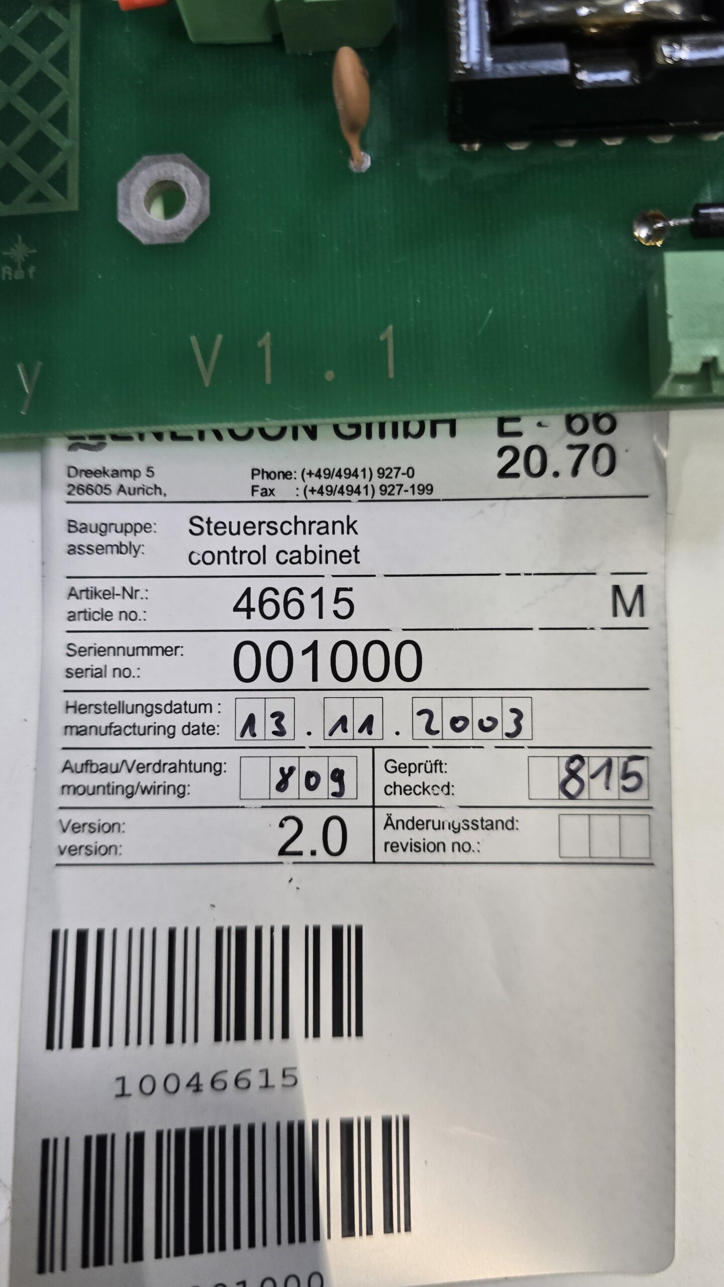 Steuerschrank Platine E-66